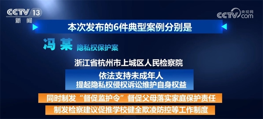 馮某隱私權(quán)保護(hù)案。針對(duì)未成年人隱私視頻被轉(zhuǎn)發(fā),生活學(xué)習(xí)受到影響,浙江省杭州市上城區(qū)人民檢察院依法支持未成年人提起隱私權(quán)侵權(quán)訴訟維護(hù)自身權(quán)益。同時(shí),制發(fā)“督促監(jiān)護(hù)令”督促父母落實(shí)家庭保護(hù)責(zé)任,制發(fā)檢察建議促推學(xué)校健全欺凌防控等工作制度。
