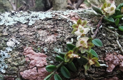 蘭科新物種——臥龍無柱蘭,于2021年11月發(fā)表于國際植物學(xué)期刊《北歐植物學(xué)》,是程躍紅和林紅強等人在轄區(qū)巡護監(jiān)測過程中發(fā)現(xiàn)的,以模式產(chǎn)地“臥龍”命名。該蘭科植物生長在海拔2700米左右的陡峭崖壁上,植株高約19-22厘米,花期7-8月,莖為呈紫紅色,開白色小花,中心為綠色,目前僅在大熊貓國家公園臥龍片區(qū)發(fā)現(xiàn)1個居群,約70株成熟個體,參照IUCN(世界自然保護聯(lián)盟)的標(biāo)準(zhǔn),臥龍無柱蘭被認(rèn)定為“極度瀕?!钡燃壍闹参铩?/p>