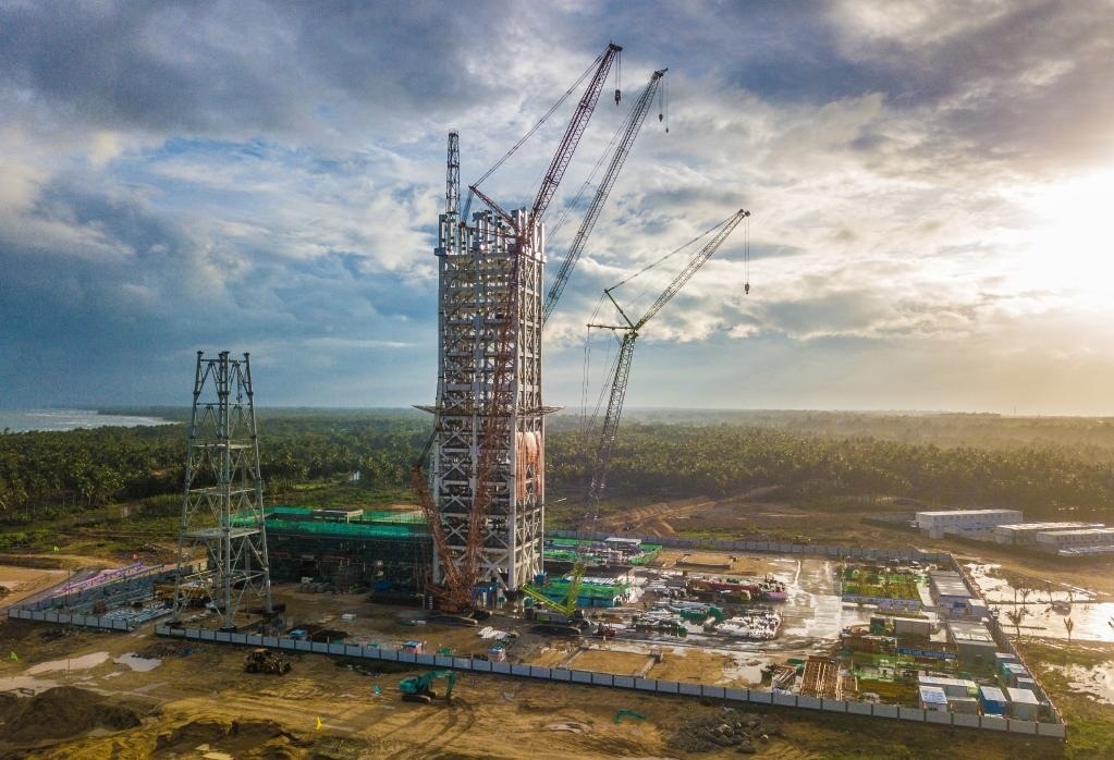 圖為建設(shè)中的海南商業(yè)航天發(fā)射場1號工位(無人機照片,5月12日攝)。 新華社記者蒲曉旭 攝