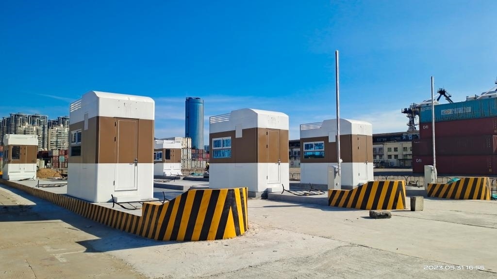 圖為海口秀英港集裝箱查驗區(qū)域海關(guān)查驗卡口。(袁晨恒 攝)
