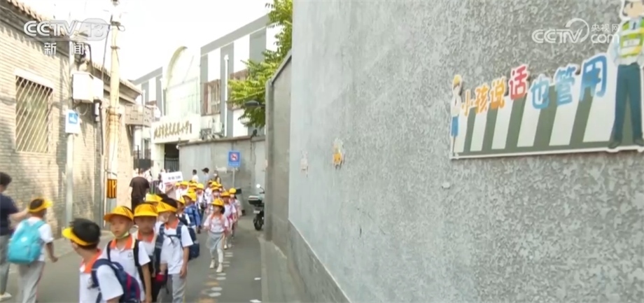 在北京東城小報房胡同有一條彩色的步道,就是專門為身高1米左右的低年級小學生設置的。
