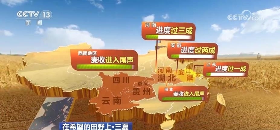 農(nóng)業(yè)農(nóng)村部小麥機收調(diào)度顯示,目前,全國已收冬小麥面積7500多萬畝,麥收進度過兩成。其中,西南地區(qū)、湖北麥收進入尾聲;河南進度過三成、安徽進度過兩成、江蘇進度過一成。