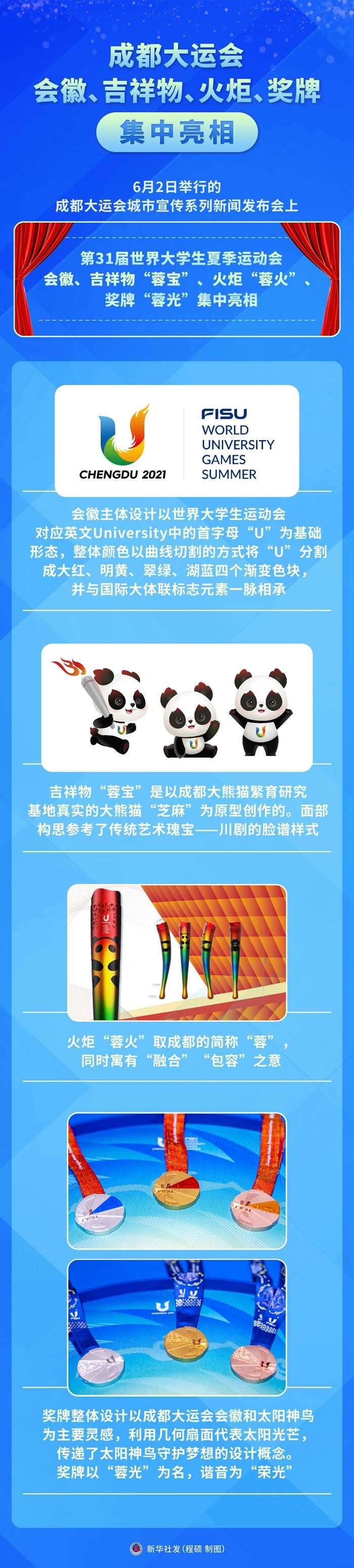 新華社成都6月2日電(記者董小紅、陳地)2日舉行的成都大運(yùn)會(huì)城市宣傳系列新聞發(fā)布會(huì)上,第31屆世界大學(xué)生夏季運(yùn)動(dòng)會(huì)會(huì)徽、吉祥物“蓉寶”、火炬“蓉火”、獎(jiǎng)牌“蓉光”集中亮相。