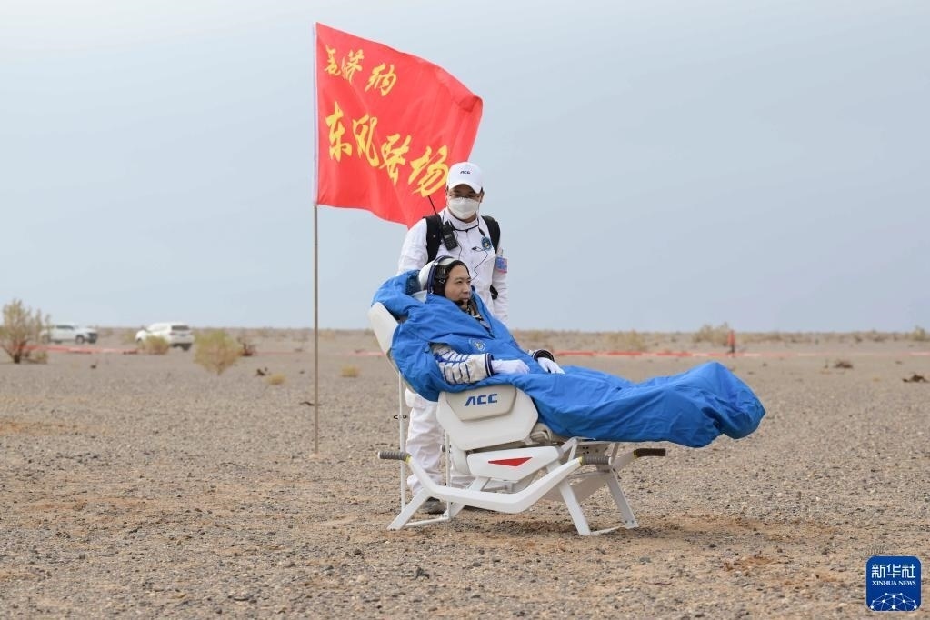 6月4日,神舟十五號載人飛船返回艙在東風著陸場成功著陸。這是航天員張陸安全順利出艙。新華社記者 李志鵬 攝