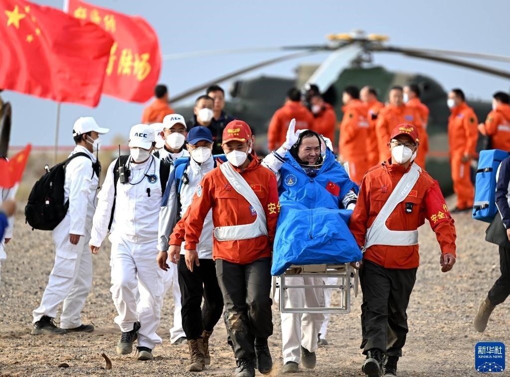 6月4日,神舟十五號載人飛船返回艙在東風著陸場成功著陸。這是航天員費俊龍安全順利出艙。新華社記者 李志鵬 攝