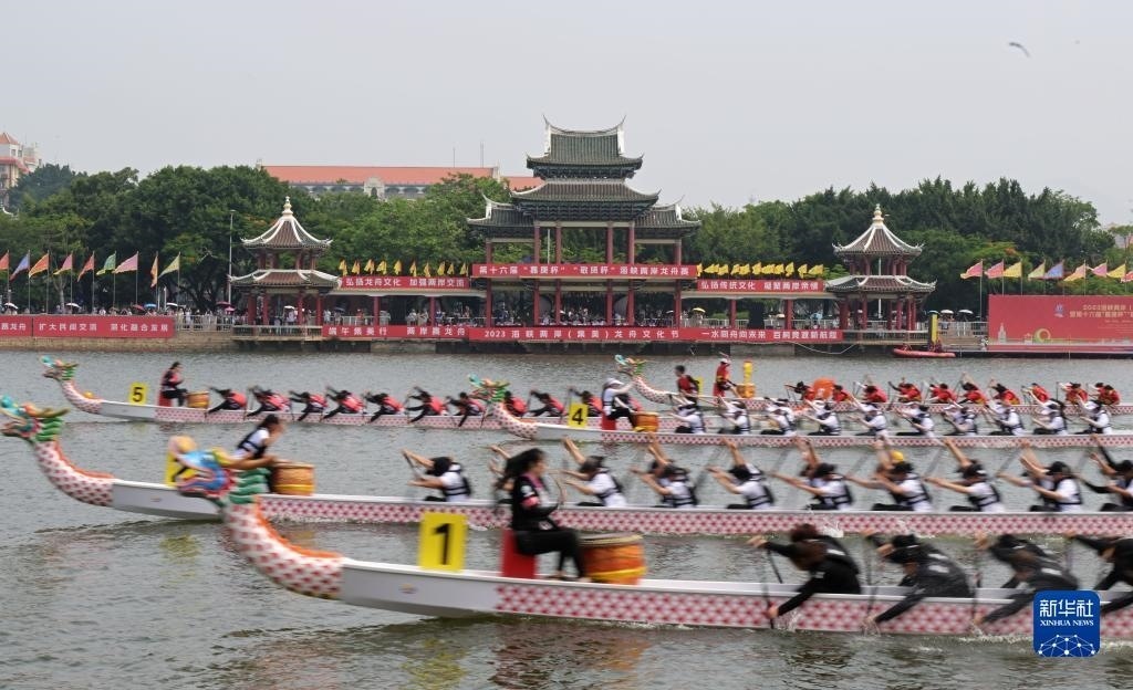 當(dāng)日,2023海峽兩岸(集美)龍舟文化節(jié)暨第十六屆“嘉庚杯”“敬賢杯”海峽兩岸龍舟賽在廈門集美龍舟池啟幕。來自海峽兩岸的47支龍舟隊伍在競賽中享受龍舟競渡的活力、中華傳統(tǒng)文化的魅力,共有約500名臺胞參與賽事。