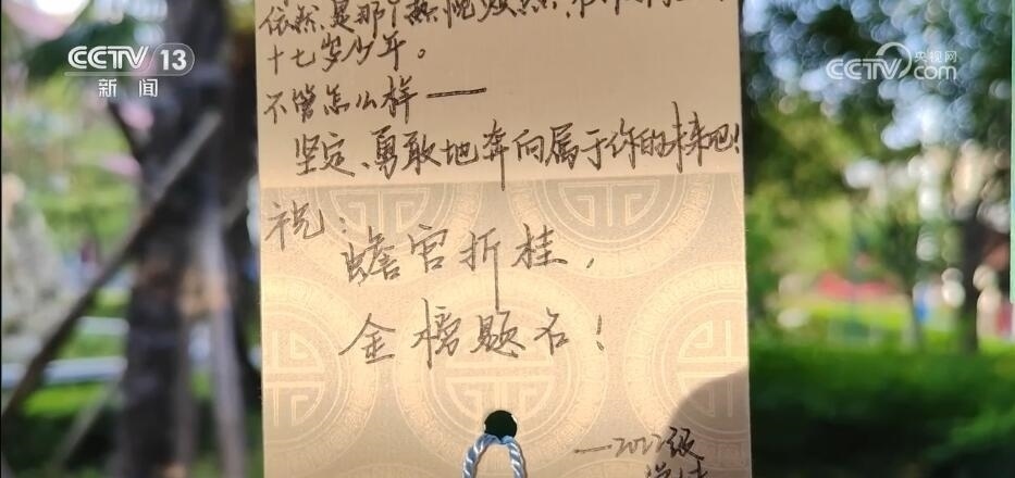 河南漯河市第四高級(jí)中學(xué)高三學(xué)生 趙晨辰:書簽里面有一句話我非常感動(dòng),“他強(qiáng)任他強(qiáng),清風(fēng)拂山崗”。無論是順境還是逆境,都要堅(jiān)持不懈,永遠(yuǎn)不能放棄。我希望承載著這份祝福,能夠自信踏入考場,能夠書寫出我認(rèn)為最好的答卷。