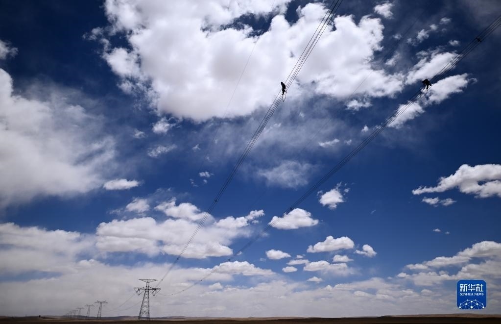 5月底,被譽(yù)為“電力天路”的青藏聯(lián)網(wǎng)工程迎來年度集中檢修,超過420人將在15天內(nèi)完成608公里的輸電線路及柴達(dá)木換流站的檢修工作。在平均海拔超過4500米的長(zhǎng)江源頭腹地,檢修人員克服高寒缺氧的環(huán)境,在云端走線巡檢,成為“電力天路”一道獨(dú)特的風(fēng)景。自2012年起,國(guó)家電網(wǎng)青海省電力公司每年對(duì)青藏聯(lián)網(wǎng)工程開展年度集中檢修,對(duì)設(shè)備進(jìn)行全方位“體檢”和“診療”,以保障連接西藏的能源通道安全平穩(wěn)運(yùn)行。截至目前,青藏聯(lián)網(wǎng)工程已累計(jì)向西藏輸送電量超過105億千瓦時(shí),為西藏經(jīng)濟(jì)社會(huì)高質(zhì)量發(fā)展提供了可靠的能源保證。   新華社記者 張宏祥 攝
