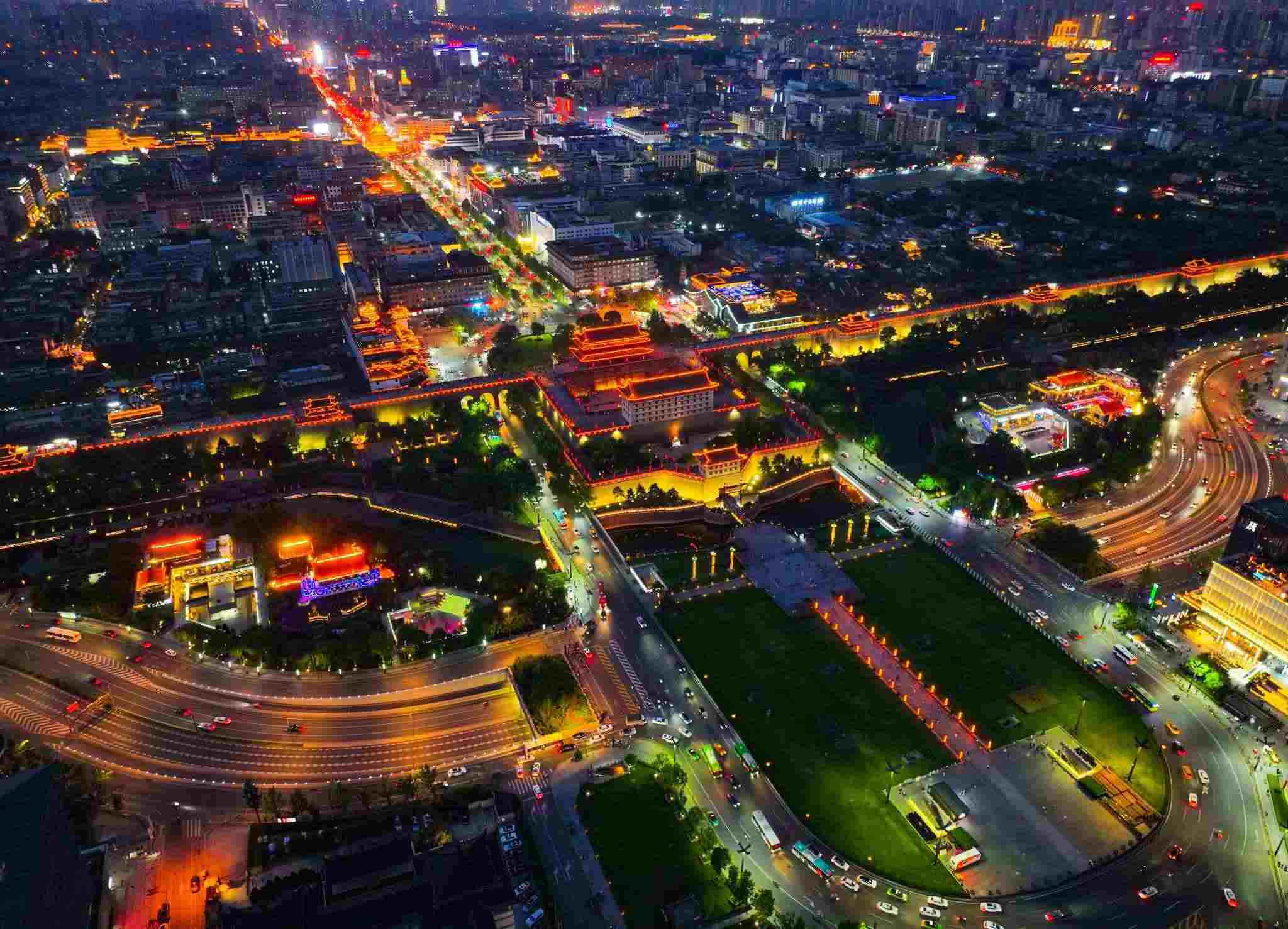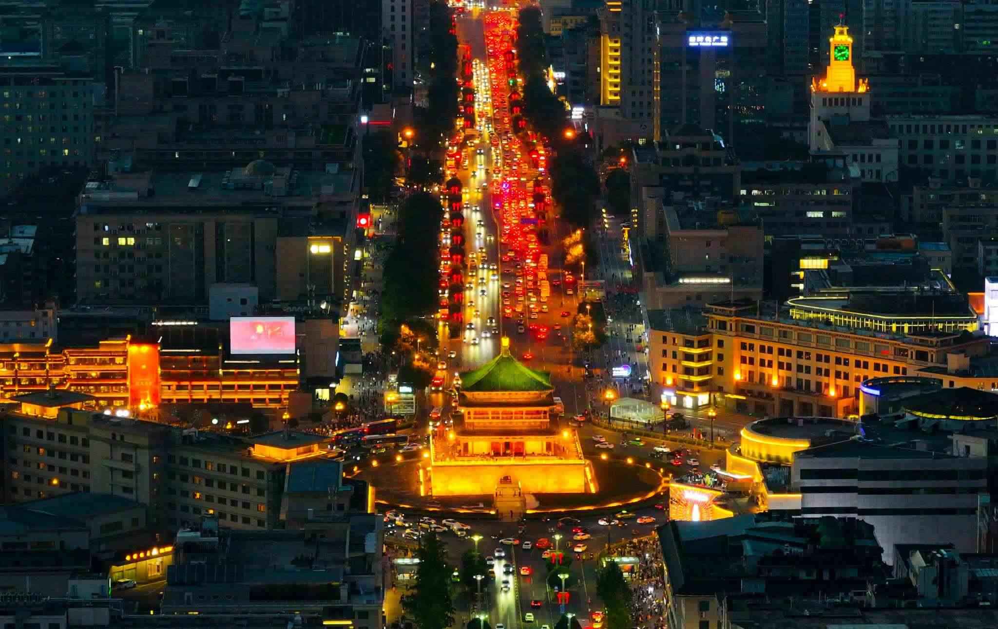 2023年6月8日,西安南門城墻及中軸線夜景。視覺中國