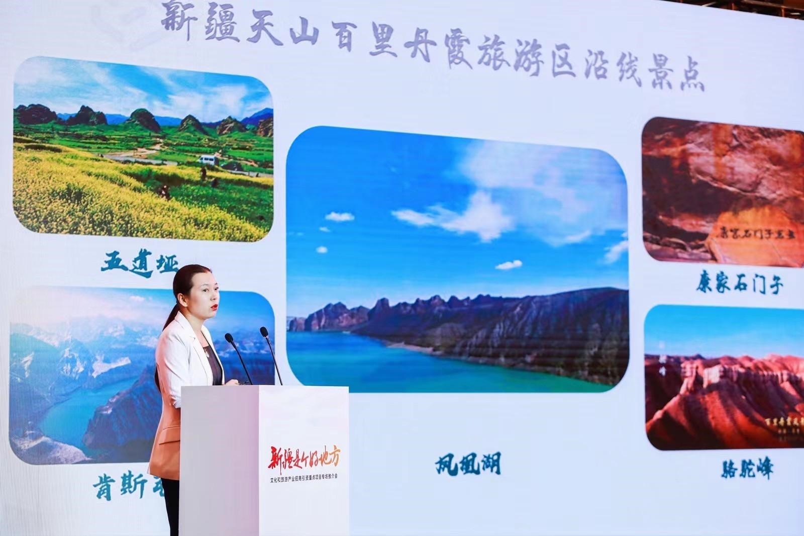 推介會(huì)上,共有世界文化遺產(chǎn)龜茲文化數(shù)字化發(fā)展與應(yīng)用項(xiàng)目、天山龍脊旅游度假區(qū)項(xiàng)目、獨(dú)山子紅色工業(yè)旅游項(xiàng)目、新疆江布拉克景區(qū)產(chǎn)業(yè)提升項(xiàng)目、新疆天山百里丹霞旅游區(qū)項(xiàng)目、策勒縣昆侖山景區(qū)旅游業(yè)態(tài)開發(fā)項(xiàng)目等6個(gè)投資潛力好、投資規(guī)模大、帶動(dòng)能力強(qiáng)的文化和旅游產(chǎn)業(yè)項(xiàng)目,由推介代表依次在會(huì)上進(jìn)行宣傳推介,為新疆文化和旅游產(chǎn)業(yè)高質(zhì)量發(fā)展打開新局面,注入新動(dòng)能。