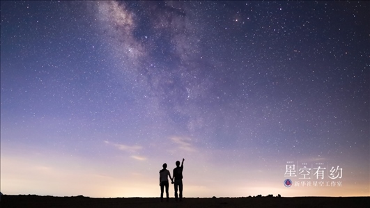 北京市天文攝影愛好者王俊峰2019年8月3日在江西省上饒市橫峰縣葛源鎮(zhèn)拍攝的兩位年輕人在仰望夏日銀河。(本人供圖)