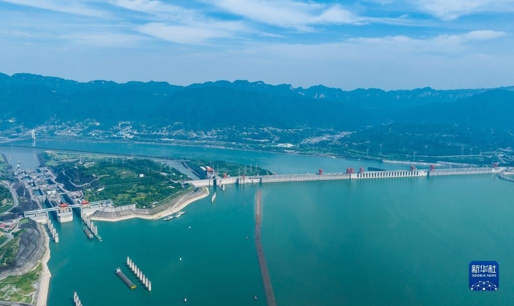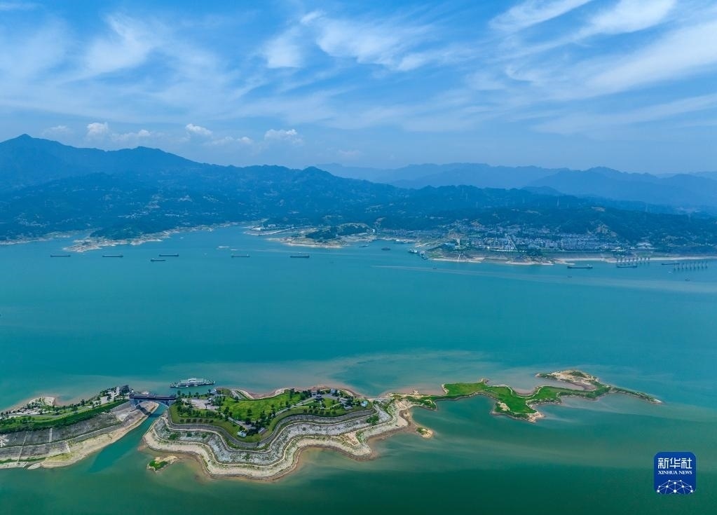 6月10日,船舶從湖北省宜昌市秭歸縣木魚島外沿水域駛過(guò)(無(wú)人機(jī)照片)。
