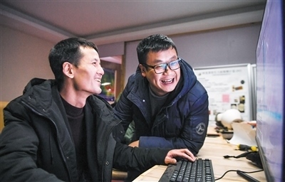 國(guó)家天文臺(tái)阿里觀(guān)測(cè)站駐站工程師尤顯龍(左)和同事唐鵬在討論觀(guān)測(cè)到的數(shù)據(jù)。新華社記者 晉美多吉攝