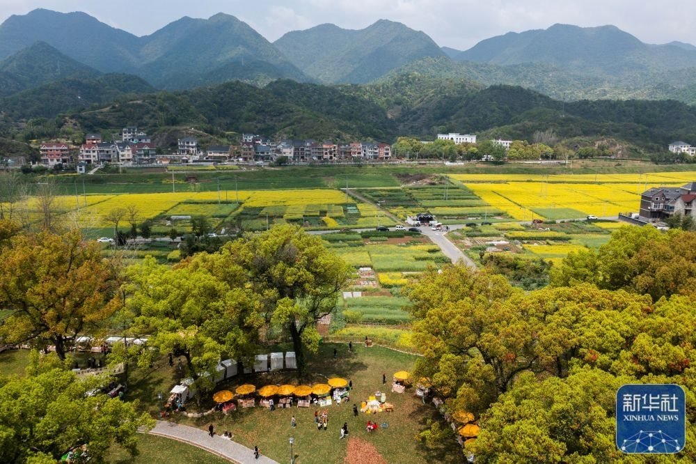 空中俯瞰浙江杭州市富陽(yáng)區(qū)新桐鄉(xiāng)小桐洲村香樟公園和盛開的油菜花田(4月7日攝,無(wú)人機(jī)照片)。新桐鄉(xiāng)依托近萬(wàn)畝盛開的油菜花田和美麗的富春江風(fēng)景,開展特色鄉(xiāng)村文旅活動(dòng),做好美麗鄉(xiāng)村、美麗經(jīng)濟(jì)的文章,助力鄉(xiāng)村振興。新華社記者 徐昱 攝