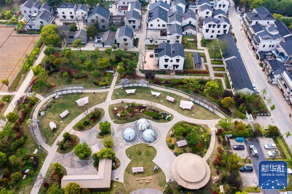 4月11日拍攝的浙江湖州市吳興區(qū)織里鎮(zhèn)伍浦村漁耕文化園的陶灣里鄉(xiāng)村咖啡店以及鄉(xiāng)村露營(yíng)地(無(wú)人機(jī)照片)。近年來(lái),湖州市吳興區(qū)織里鎮(zhèn)依托當(dāng)?shù)孛利愢l(xiāng)村建設(shè)以及自然風(fēng)光,招引鄉(xiāng)賢返鄉(xiāng)創(chuàng)業(yè),用閑置民宅、閑置土地建設(shè)特色咖啡店、花海景觀、特色民宿和農(nóng)家樂等,做足鄉(xiāng)村旅游經(jīng)濟(jì)功課。新華社記者 徐昱 攝