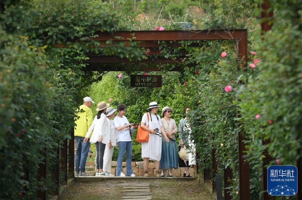 游客在浙江湖州市埭溪鎮(zhèn)玫瑰莊園游覽(4月20日攝)。新華社記者 翁忻旸 攝