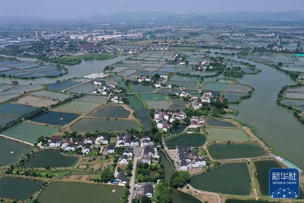 6月9日拍攝的浙江湖州市南潯區(qū)和孚鎮(zhèn)新荻村(無(wú)人機(jī)照片)。近年來(lái),新荻村大力發(fā)展水文化、漁文化、菱文化,結(jié)合自身特色發(fā)展休閑鄉(xiāng)村旅游,打造美麗鄉(xiāng)村升級(jí)版。新華社記者 黃宗治 攝