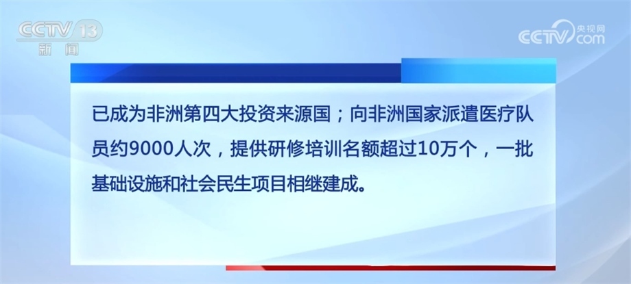 合作規(guī)模不斷擴(kuò)大。中非貿(mào)易總額累計(jì)超2萬億美元,中國始終保持非洲第一大貿(mào)易伙伴國地位。中國企業(yè)在非新簽承包工程合同額超7000億美元,完成營業(yè)額超4000億美元;中國對非直接投資流量累計(jì)超300億美元,已成為非洲第四大投資來源國;向非洲國家派遣醫(yī)療隊(duì)員約9000人次,提供研修培訓(xùn)名額超過10萬個(gè),一批基礎(chǔ)設(shè)施和社會(huì)民生項(xiàng)目相繼建成。