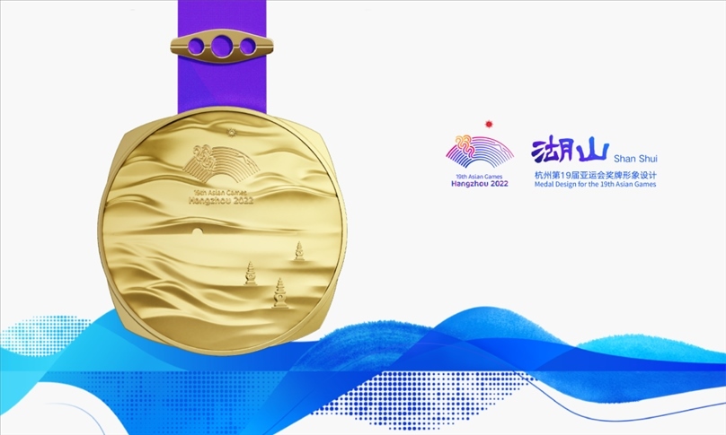 獎(jiǎng)牌取名為“湖山”,它的設(shè)計(jì)靈感源自五千年良渚文明,展示中國江南文化,呈現(xiàn)杭州山水景觀。在亞運(yùn)會(huì)獎(jiǎng)牌設(shè)計(jì)中首次將方形玉琮和圓形獎(jiǎng)?wù)氯跒橐惑w,其中獎(jiǎng)牌正面用凸出的線條勾勒出“三面云山一面城”的杭城畫卷,湖水漣漪,山巒起伏;獎(jiǎng)牌背面,形似方形印章,寓意運(yùn)動(dòng)員們在杭州亞運(yùn)會(huì)上留下美好的印記。