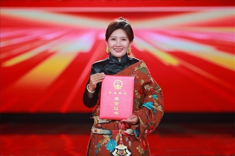 中宣部分管日常工作的副部長、文化和旅游部部長胡和平(左一) 教育部黨組書記、部長懷進(jìn)鵬(右一) 為最美教師和最美教師團(tuán)隊頒獎