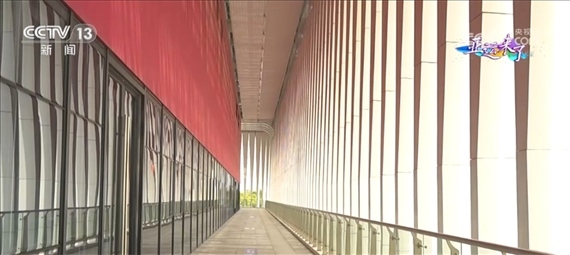 總臺央視記者 任梅梅:現(xiàn)在我們就來到了手球館室外的二層平臺,進(jìn)入了“水幔”的內(nèi)部,這一條條垂著的“水幔”其實(shí)不僅僅是裝飾品,更有著實(shí)際的作用,它們就像百葉窗一樣,能夠起到隔熱的效果,另外還可以減少眩光,提高室內(nèi)視覺的舒適度。