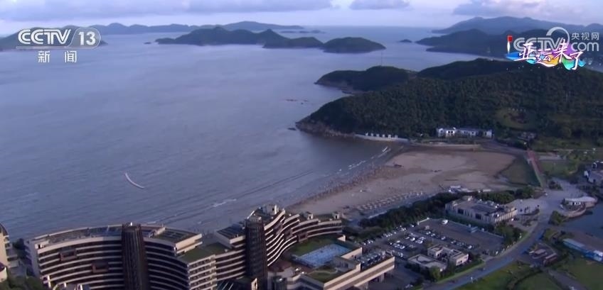 我們現(xiàn)在飛越的是象山的黃金海岸線。亞帆中心為什么花落象山的海岸呢?象山氣候適宜,常年風(fēng)向風(fēng)速穩(wěn)定,海域擁有多處寬闊無障礙、無條件限制的深水海域,非常適宜帆船、帆板運動。而且比賽場地離岸很近,配套設(shè)施齊全,能夠滿足集訓(xùn)需求。國家青少年帆板帆船訓(xùn)練基地就落戶這里。