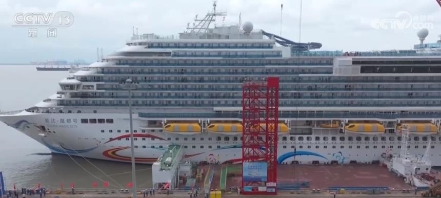 總臺央視記者 吳天白:這里就是郵輪的5甲板,我們可以看到首艘國產(chǎn)大型郵輪正在緩緩地駛向上海外高橋造船碼頭,準(zhǔn)備靠泊。這次試航一共進行了振動噪聲、安全返港等90余項海試項目的測試、檢驗,試航圓滿成功,這也意味著“愛達(dá)·魔都號”郵輪的各項性能已基本具備運營條件。