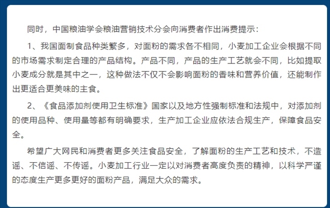 ·面粉添加“科技與狠活”?中國糧油學(xué)會營銷技術(shù)分會辟謠:與事實(shí)不符。