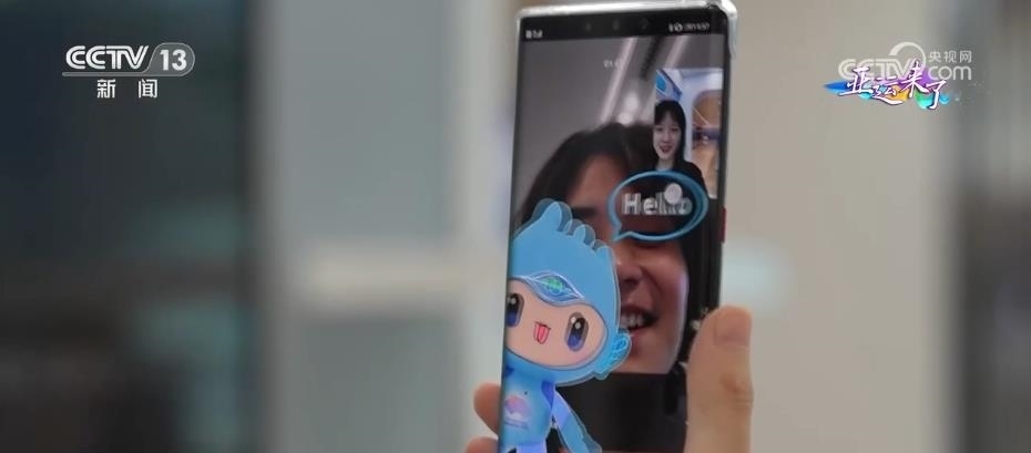 目前,“5G新通話”可實現(xiàn)中英雙語互譯。此外,大家看到屏幕里向我們揮手的亞運吉祥物了嗎?這就是趣味通話的其中一個應(yīng)用場景。配合亞運主題,研發(fā)人員設(shè)計了多種特定手勢識別,當(dāng)我們對著鏡頭打招呼或者比愛心的時候,就可以觸發(fā)趣味通話功能,亞運吉祥物也能和我們同屏。