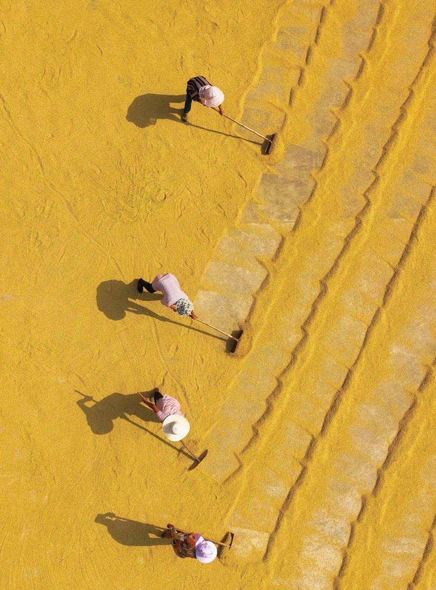 金秋時節(jié),全國各地陸續(xù)進入收獲季,農(nóng)民搶抓農(nóng)時收獲晾曬,田間一派喜人的豐收圖景。