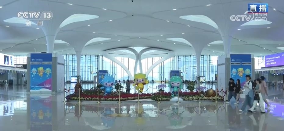 總臺記者 寧婉婷:杭州蕭山國際機場T4航站樓是本屆亞運會人員官方出入境口岸。整個T4航站樓里布滿了亞運元素,從亞運會的標志到吉祥物,到處都充滿了濃濃的亞運氛圍,也吸引了很多過往旅客打卡拍照。
