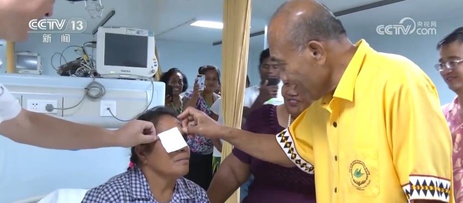 任務過程中,共有37名患者完成眼疾手術重見光明。這是一名受白內(nèi)障困擾接近10年的基里巴斯居民,聽到“和平方舟”能開展白內(nèi)障手術的消息,他在家人的陪伴下第一時間來到“和平方舟”眼科診室。中國醫(yī)生為其制定了全流程、精準化的診療方案,讓她重見光明。