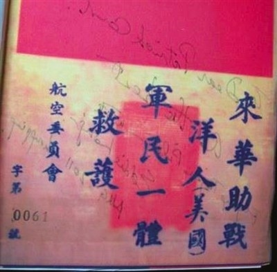 當(dāng)時(shí),每名飛虎隊(duì)隊(duì)員走向戰(zhàn)機(jī)時(shí),都深知自己或許永不能返航。他們身上都帶著寫有“來華助戰(zhàn)洋人,軍民一體救護(hù)”的“血符”,這也是飛虎隊(duì)隊(duì)員與中國軍民之間的生死契約,一旦發(fā)現(xiàn)有落難的美軍飛行員,大家會(huì)不惜代價(jià),全力救助。