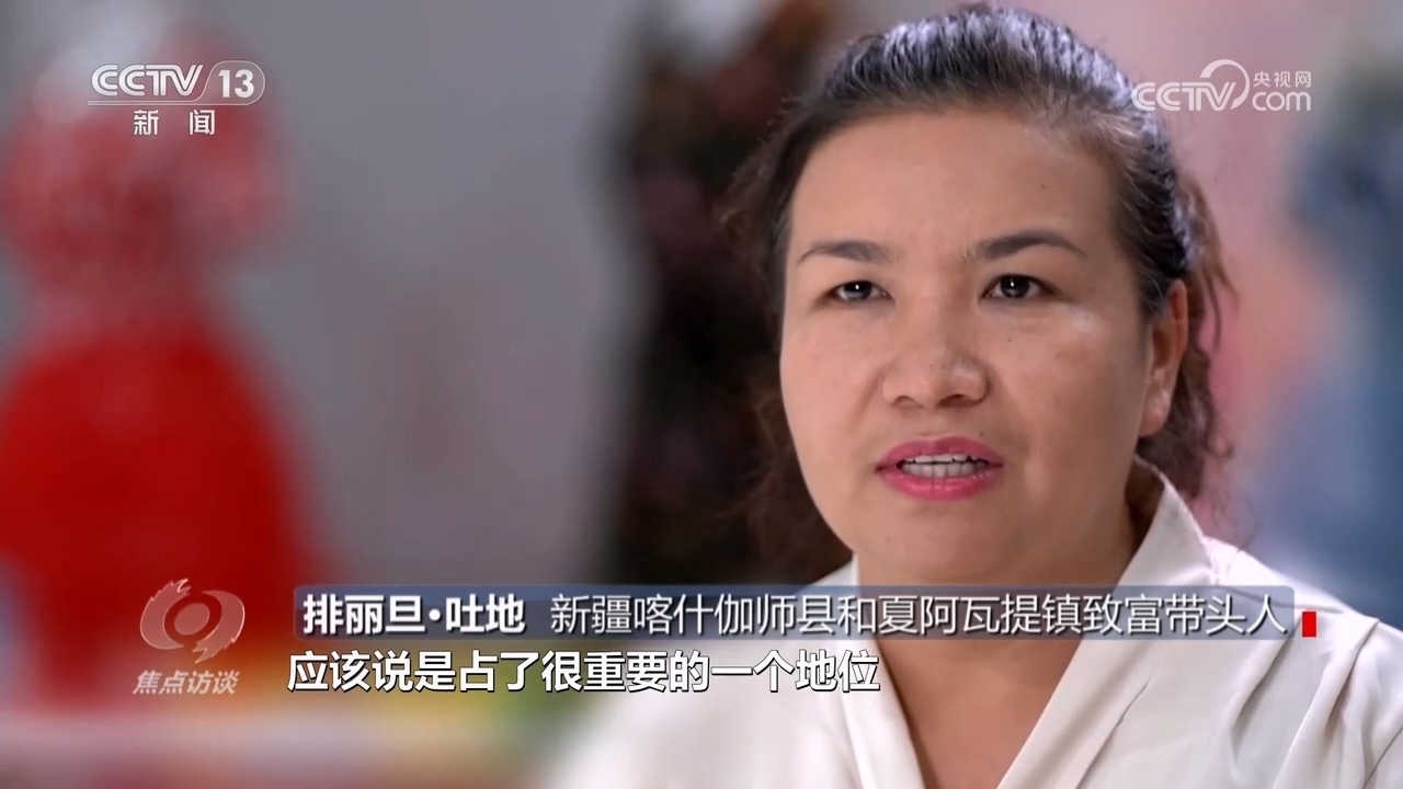 新疆喀什伽師縣和夏阿瓦提鎮(zhèn)致富帶頭人排麗旦·吐地:“資金回籠周期比較長,服裝做好以后,在我這壓放3到6個月不等,資金周轉(zhuǎn)這塊是很大的問題?!?/p>