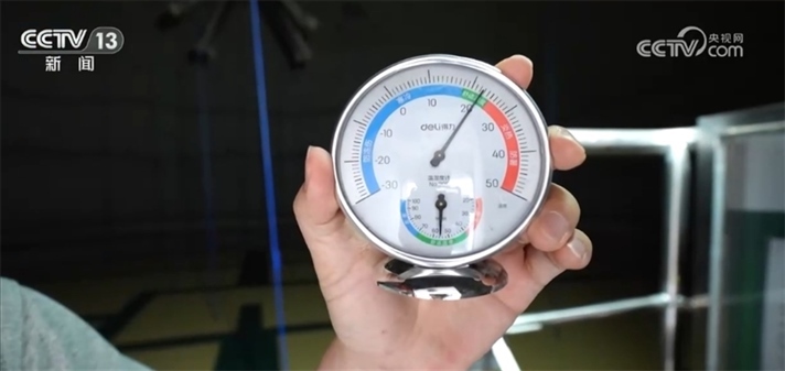我現(xiàn)在是在氣膜倉的頂部,此刻倉外的溫度是30℃左右,我們再到倉內看一下。一進來就感覺倉里邊一股涼氣襲人,我們來看這個溫度計上顯示此刻的溫度大概是在22℃,也就是說倉內外的溫差有8℃左右,保溫性能還是非常明顯的。