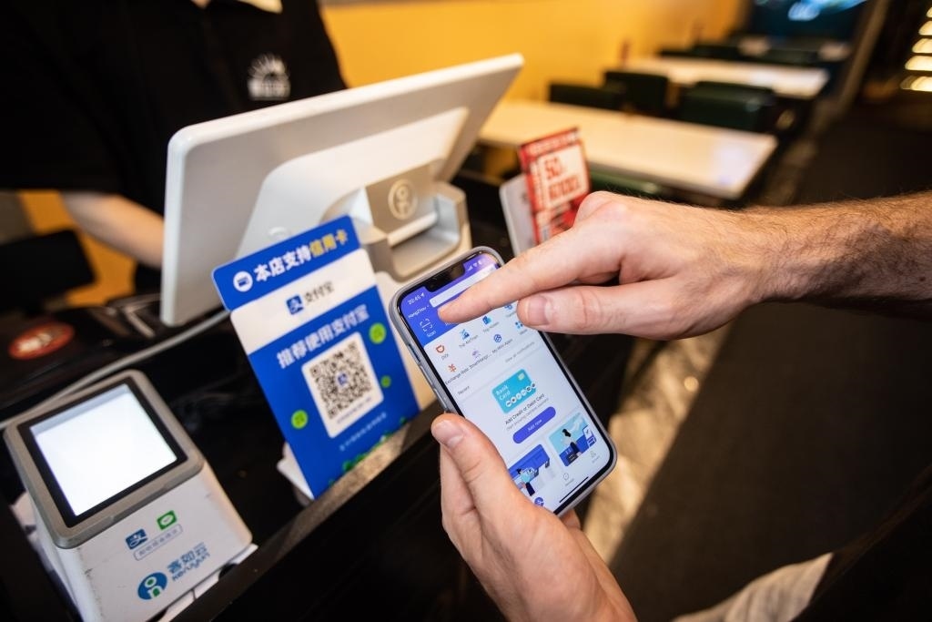 圖為外國游客在杭州使用電子支付軟件。(受訪者供圖)