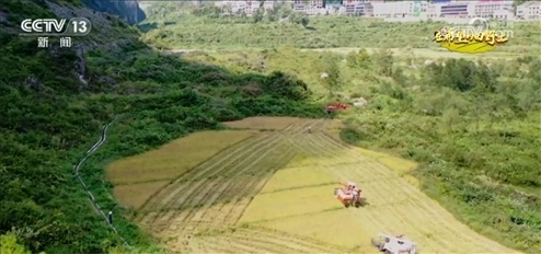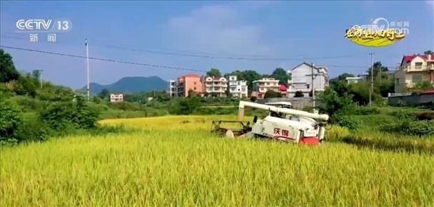 在湖南婁底漣源市湄江鎮(zhèn),水稻已經(jīng)進(jìn)入收獲季,收割機(jī)正在地里忙碌,這一季收成很好。