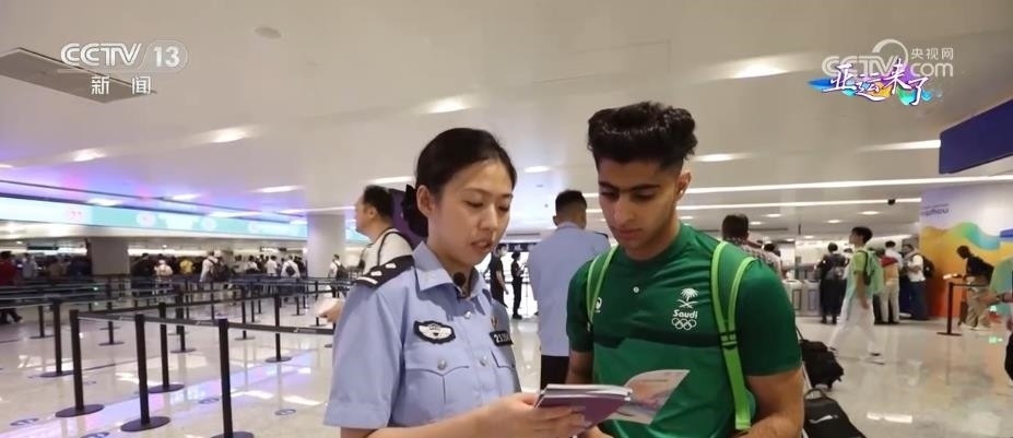 記者看到,在杭州機(jī)場(chǎng)口岸入境現(xiàn)場(chǎng),杭州邊檢站設(shè)置了中英文對(duì)照的亞運(yùn)會(huì)通關(guān)指示標(biāo)識(shí)。配備了具備泰語(yǔ)、韓語(yǔ)、日語(yǔ)、阿拉伯語(yǔ)等多語(yǔ)種能力的檢查員,并在現(xiàn)場(chǎng)向入境的運(yùn)動(dòng)員發(fā)放、介紹亞運(yùn)會(huì)服務(wù)指南。