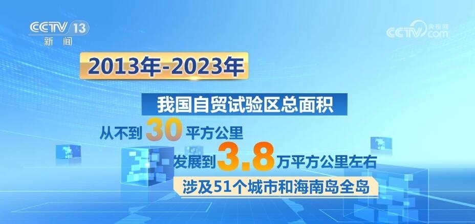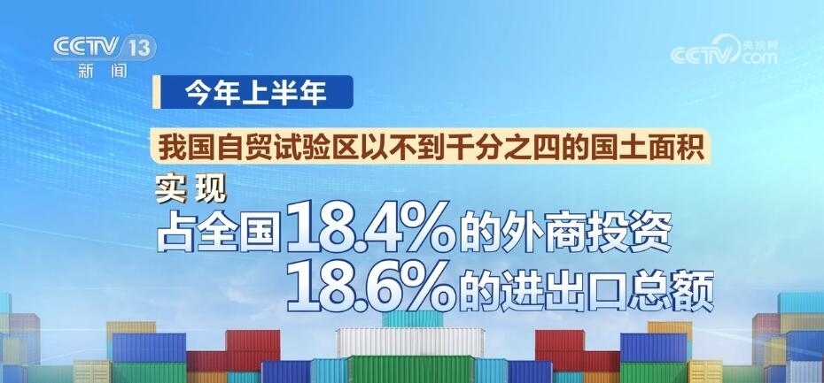 十年間,我國自貿(mào)試驗區(qū)的總面積從不到30平方公里發(fā)展到3.8萬平方公里左右,涉及51個城市和海南島全島。今年上半年,我國自貿(mào)試驗區(qū)以不到千分之四的國土面積,實現(xiàn)了占全國18.4%的外商投資和18.6%的進出口總額,帶動全國形成了覆蓋東西南北中、統(tǒng)籌沿海內(nèi)陸沿邊的改革開放創(chuàng)新格局。