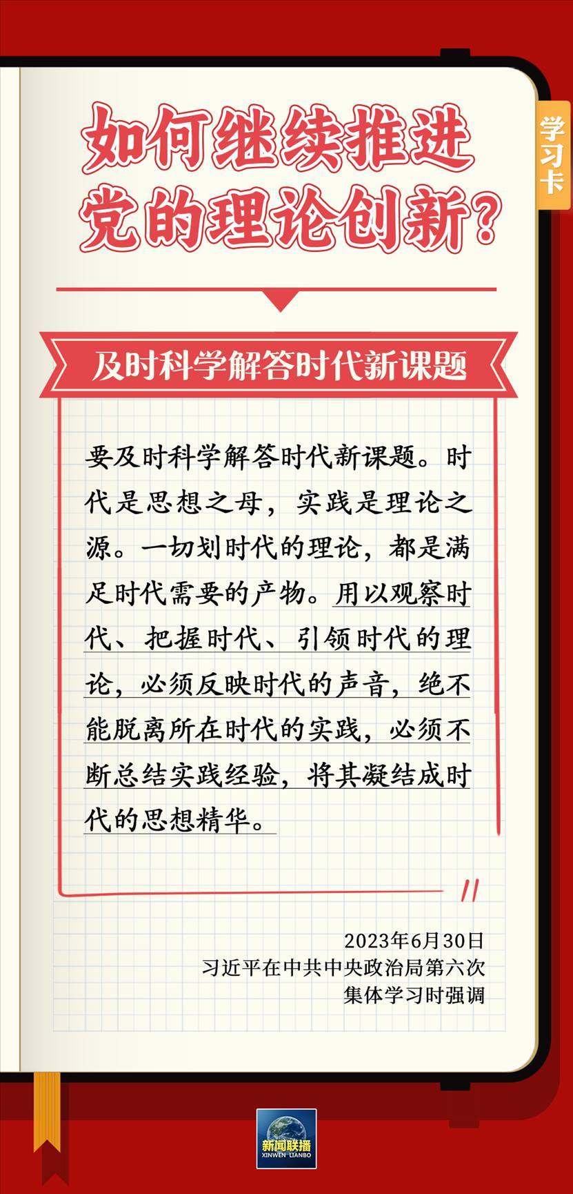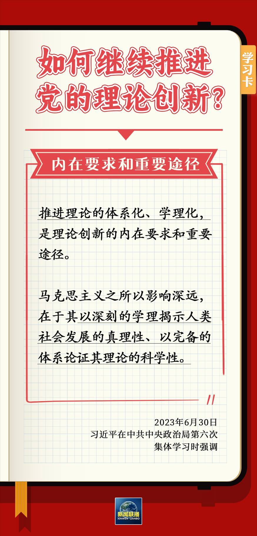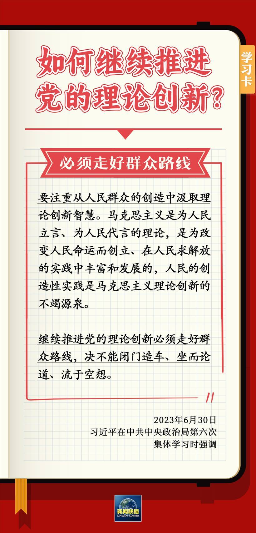 6月30日,習近平在主持中共中央政治局第六次集體學習時強調(diào),要不斷深化對黨的理論創(chuàng)新的規(guī)律性認識。為什么要推進理論創(chuàng)新?如何繼續(xù)推進黨的理論創(chuàng)新?一起學習↓
