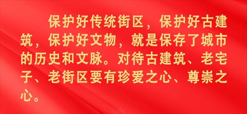 歷史文化是城市的靈魂,一個城市的歷史遺跡、文化古跡、人文底蘊,是城市生命的一部分。習近平總書記多次考察調(diào)研老城建筑和文化街區(qū),對傳承保護城市歷史文化遺產(chǎn)作出重要指示。