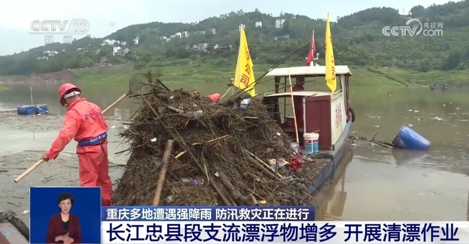 近段時(shí)間,重慶的強(qiáng)降雨天氣還導(dǎo)致長(zhǎng)江重慶忠縣段各支流漂浮物增多。目前,多艘清漂船來(lái)回穿梭在江面上,分區(qū)域開展清漂作業(yè),清漂工人將江面漂浮物一一打撈上船,轉(zhuǎn)運(yùn)上岸后再進(jìn)行集中處理。7月3日以來(lái),忠縣累計(jì)出動(dòng)人工打撈船次80余船次,累計(jì)打撈垃圾約400余噸。此外,此輪長(zhǎng)江洪峰過(guò)境忠縣后,長(zhǎng)江忠縣段水位迎來(lái)上漲,當(dāng)?shù)叵嚓P(guān)部門正密切關(guān)注水位變化。