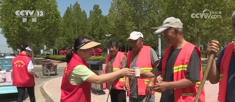 在德州市陵城區(qū),當?shù)卦O置了歇腳驛站,為戶外工作者提供納涼的地方。同時,志愿者們走進田間地頭、街頭巷尾,為戶外工作者們送去綠豆湯、礦泉水等解暑降溫物品。
