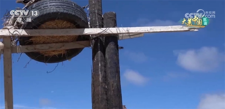 三江源國家公園生態(tài)管護(hù)員 加羊多杰:這個窩是生態(tài)管護(hù)員自建的,黃河鄉(xiāng)有他們自建的鳥巢或者鳥窩286個。