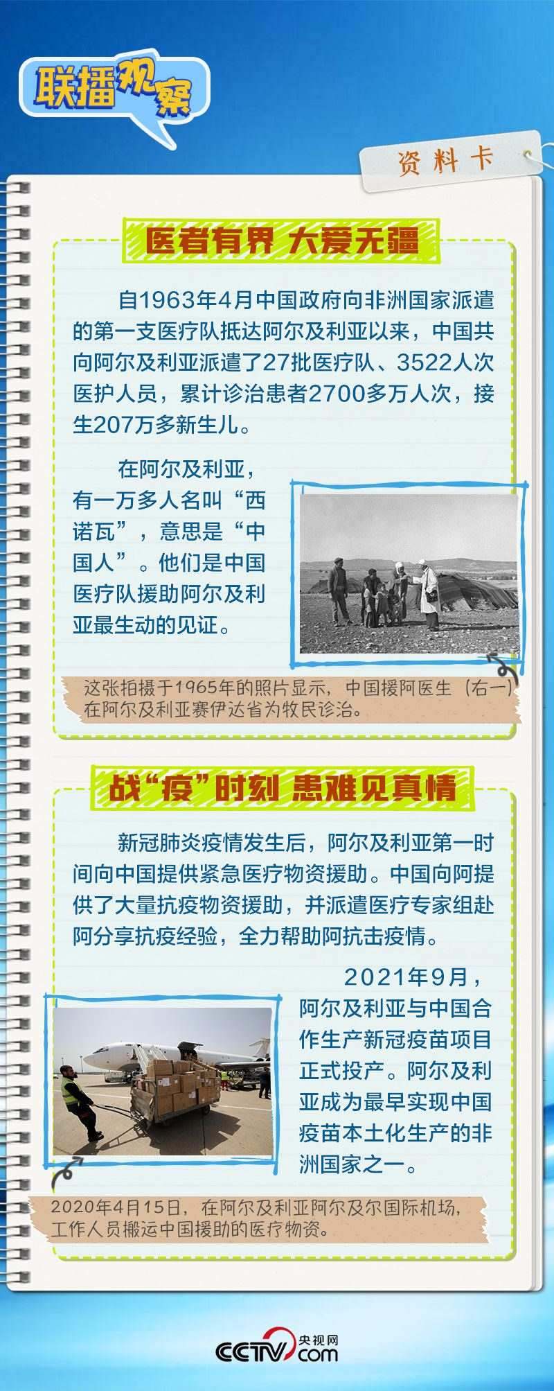 會(huì)談中,習(xí)主席特別提到,今年是中國(guó)向阿爾及利亞派遣醫(yī)療隊(duì)60周年,并稱贊此舉樹立了“中阿友誼的豐碑”。中阿傳統(tǒng)友誼深厚,兩國(guó)始終相互尊重、平等相待、彼此支持,締造了一段段友好交往的佳話。