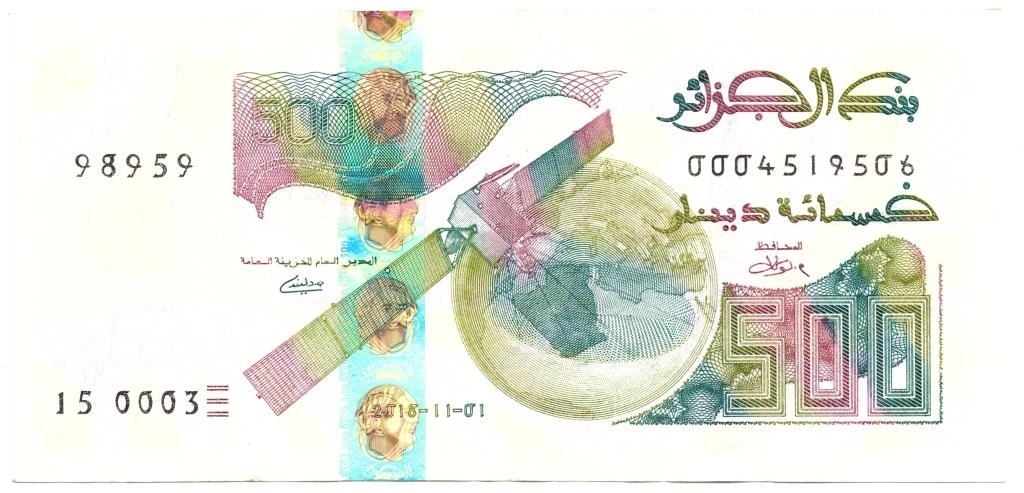 阿爾及利亞一號通信衛(wèi)星印在當?shù)丶垘派稀?/span>