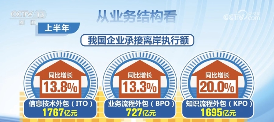 央視網(wǎng)消息:商務(wù)部今天(7月20日)公布2023年上半年我國服務(wù)外包產(chǎn)業(yè)發(fā)展數(shù)據(jù)。上半年,我國服務(wù)外包產(chǎn)業(yè)穩(wěn)步增長。