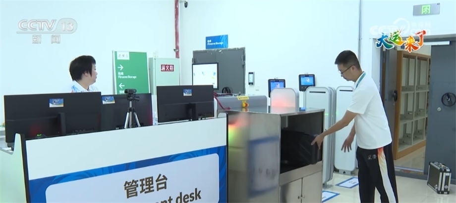 總臺(tái)記者 王勝東:我現(xiàn)在就來到了射擊場(chǎng)館非常重要的一個(gè)區(qū)域——槍彈庫(kù),這里通過人臉識(shí)別、芯片識(shí)別和這臺(tái)X光機(jī),共同組成了一套安檢系統(tǒng),可以確保教練員和運(yùn)動(dòng)員在人、槍、彈分離的安全前提下快速、有效地通關(guān)、出入庫(kù)。