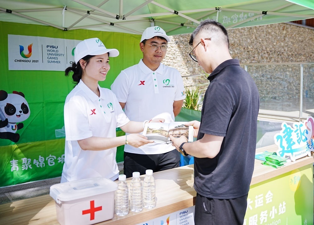 成都的大街小巷,現(xiàn)在隨處可見(jiàn)大運(yùn)會(huì)元素和標(biāo)識(shí)景觀。其中,志愿服務(wù)小站是一道獨(dú)特的風(fēng)景線。28歲的志愿者張思宇這幾天正為來(lái)往游客提供咨詢等服務(wù)。