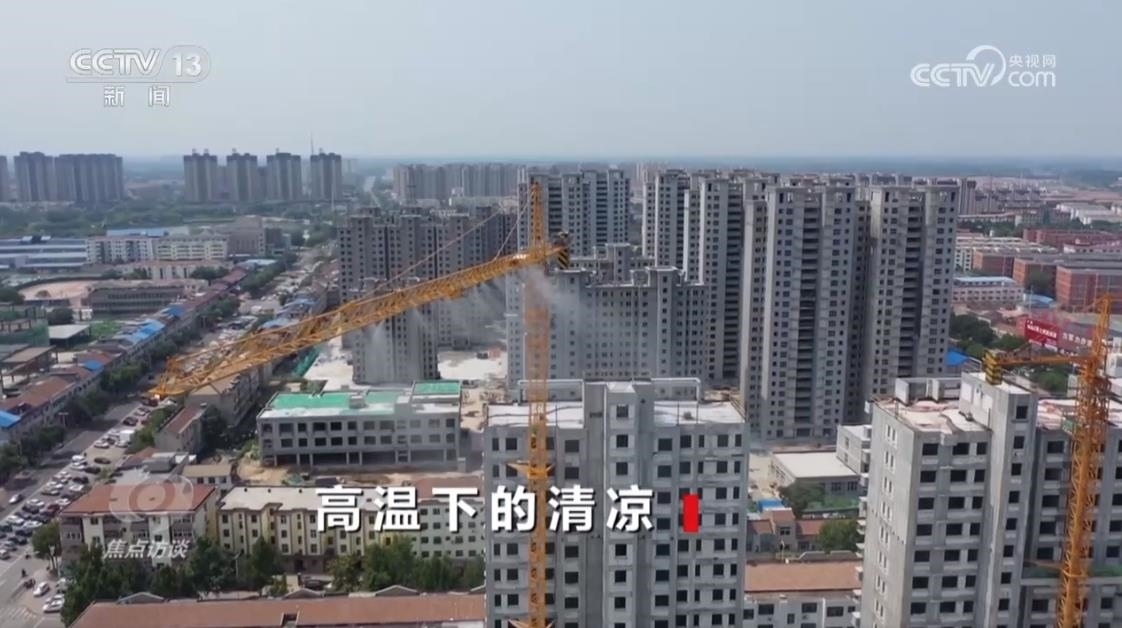 為了保護(hù)高溫下堅守崗位的工作人員,還有很多地方主動采取各種防暑降溫措施。在山東平原縣,當(dāng)?shù)卦?7個建筑工地上安裝了“智慧噴霧降溫系統(tǒng)”,實時監(jiān)控溫度和粉塵,一旦達(dá)到預(yù)警值,立刻開啟噴淋。兩小時后,溫度可由34℃降至29℃,PM10由每立方米35微克降至22微克。
